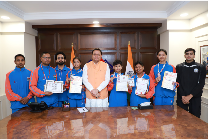 मुख्यमंत्री ने उत्तराखंड के कराटे चैंपियन्स को किया सम्मानित।