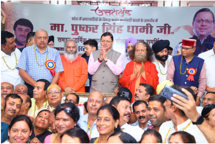 मुख्यमंत्री श्री पुष्कर सिंह धामी ने रविवार को बल्लीवाला, देहरादून में ‘भ्रष्टाचार मुक्त उत्तराखंड’ के लिए मुख्यमंत्री द्वारा किए जा रहे प्रयासों पर धार्मिक एवं सामाजिक संस्थाओं द्वारा आयोजित सम्मान समारोह में प्रतिभाग किया। इस अवसर पर मुख्यमंत्री ने सभी को भ्रष्टाचार मुक्त उत्तराखंड की शपथ भी दिलाई।