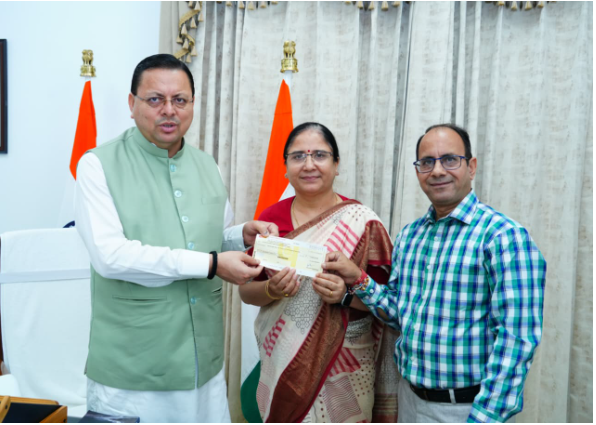मुख्यमंत्री श्री पुष्कर सिंह धामी से मुख्यमंत्री आवास में आज दून विश्वविद्यालय की कुलपति प्रो. सुरेखा डंगवाल ने शिष्टाचार भेंट की और इस अवसर पर मुख्यमंत्री को दून विश्वविद्यालय के सभी शिक्षकों, अधिकारियों एवं कर्मचारियों का एक दिन का वेतन मुख्यमंत्री राहत कोष में योगदान स्वरूप भेंट किया , ताकि आपदा प्रभावित लोगों की मदद की जा सके। मुख्यमंत्री श्री पुष्कर सिंह धामी ने इस सामूहिक सहयोग भावना की सराहना करते हुए कहा कि “आपदा की इस घड़ी में दून विश्वविद्यालय का यह योगदान न केवल एक प्रेरक कदम है, बल्कि यह राज्य के शैक्षणिक संस्थानों की सामाजिक जिम्मेदारी और संवेदनशीलता को भी दर्शाता है।”